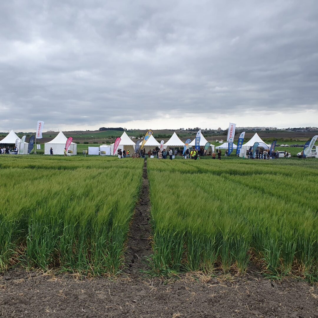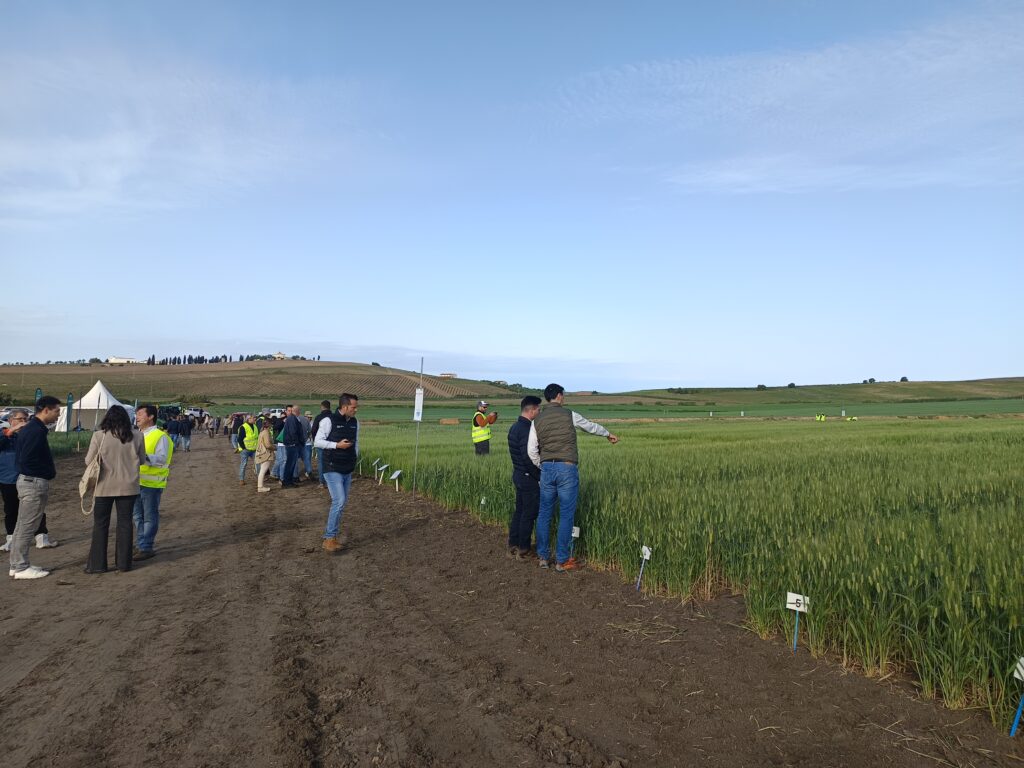 La jornada de campo empezó fría y húmeda, y con algo de barro, pero no fue inconveniente para agricultores, técnicos y empresas que acudieron a los campos de ensayos ubicados en el Centro IFAPA Rancho de la Merced. Una de las frases más repetidas entre los asistentes fue el buen estado del cultivo. “Apenas vemos enfermedades” se escuchaba entre los grupos que recorrían las 15 estaciones y las vitrinas o ensayos comerciales. No hay que olvidar que las continuas borrascas que este año han afectado a Andalucía obligaron a retrasar todas las labores agrarias de la finca.